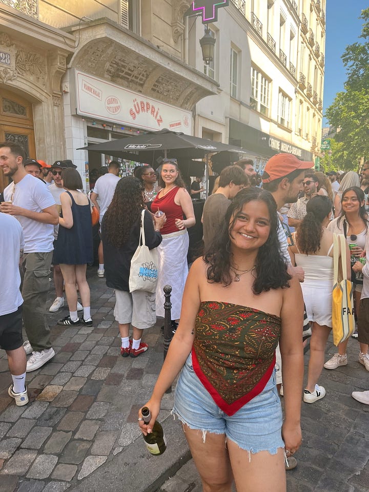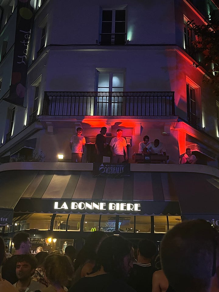 I took a glorified nap, and the weekend of music continued. It was officially the day of Fête de la Musique. There are organized orchestra performances and DJs playing music from their third floor balconies. Bars and restaurants spill out into the street, serving drinks in plastic cups. You walk down one street to listen to Ariana Grande, then the next street everyone is vibing to Brazilian funk, and a block over you can lose yourself in Afrobeats. There are small side streets that are pockets of music, and larger crowds near the Seine or the canal. It’s overwhelming.